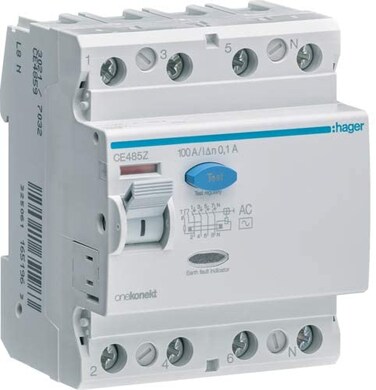 Hager Earth Leakage Circuit Breaker - 100A 4Pole 100MA (ELCB/RCCB) CE485Z