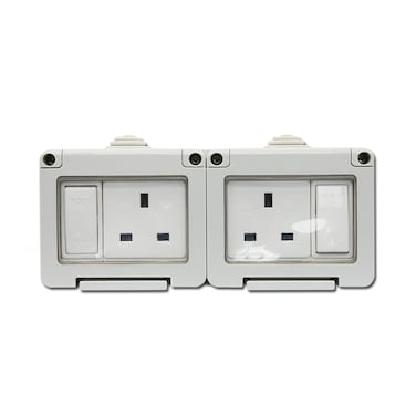 LITEX 2 Gang Outdoor Electrical Wall Mounted Universal Sockets with Switch, IP55 Waterproof Rating, 13A Sockets, 10A Switches, Grey