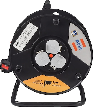High-Quality Construction: Our MODI Heavy Duty Cable Reel features a robust steel frame, ensuring durability and long-lasting performance. The high-quality materials used guarantee a reliable extension solution for your electrical needs.