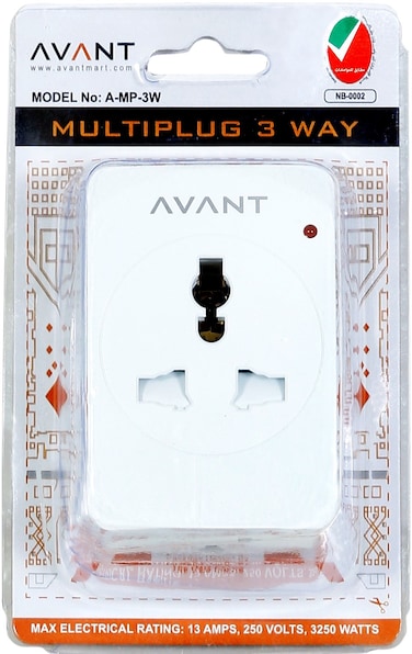Multiplug Adaptor 3 Way Universal Sockets with Indicator Fused UK Plug Adaptor by AVANT, UK