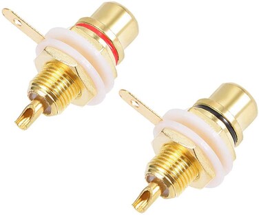 - Professional grade RCA panel connectors Gold plated for excellent signal transfer Per Piece Body Size:1.14 x 0.9 x 0.59 inch / 29 x 23 x 15mm;Arm Length:0.35 inch / 9mm. APPLICATION:RCA Jack Female Chassis Connector for Amplifiers or receivers.Mount in various electric appliances, like TV, DVD, computer, speaker, etc.
