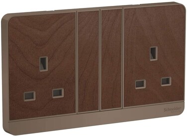 Schneider Electric AvatarOn Double Switch Socket 3P With Shutter 13Amps 250V Wood, E83T25_WD_G12