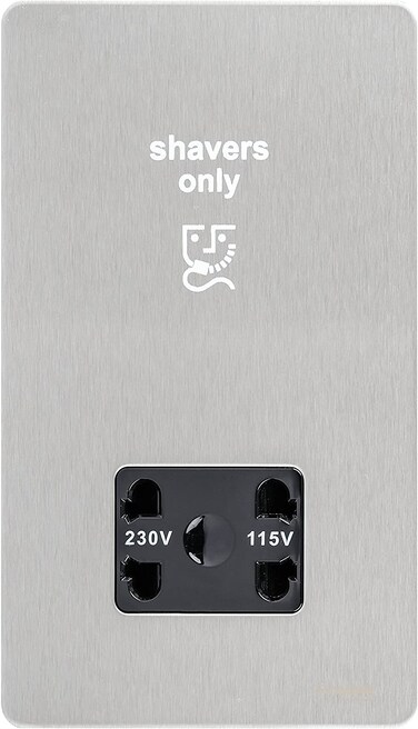 Schneider Electric Ultimate Stainless Steel Screwless Flat 115/230 Dual Voltage Plate Shaver Socket Black Insert