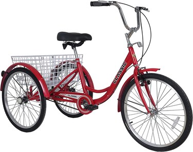 Classic Adult Tricycle With Basket 24 Inch - Red