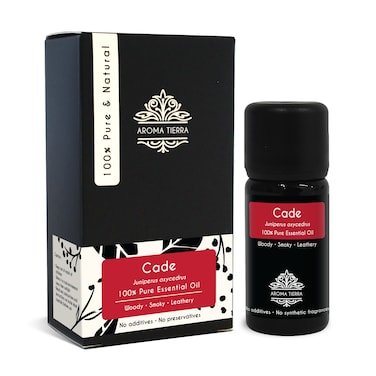 <li></b>Aroma Tierra rectified Cade Essential oil is 100% pure, natural and undiluted. It is extracted by steam distillation of wood of the Red Juniper tree from Spain, followed by rectification. It is free from chemicals, solvents, additives, synthetic fragrances and preservatives. The oil is very concentrated, potent and strong in therapeutic properties. Aroma Tierra takes great care to pack the oil in specially designed violet glass bottle to prevent damage from sunlight and preserve its potency. <li><li>Aroma Tierra offers a very wide selection of many other Essential oils such as Lavender, Peppermint, Frankincense, Rosemary, Tea Tree, Ylang Ylang, Bergamot, Oregano, Lemon, Thyme, Sweet Orange, etc., from across 35+ countries across 6 continents. With Aroma Tierra Essential oils, you can be assured of quality and potency - the company is very particular to use high quality produce that grows in its most natural climate, and processes it in a way that preserves maximum therapeutic benefits.