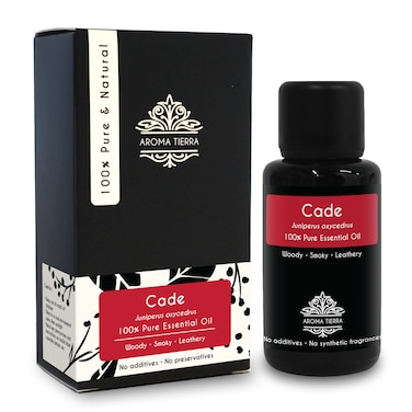 <li></b>Aroma Tierra rectified Cade Essential oil is 100% pure, natural and undiluted. It is extracted by steam distillation of wood of the Red Juniper tree from Spain, followed by rectification. It is free from chemicals, solvents, additives, synthetic fragrances and preservatives. The oil is very concentrated, potent and strong in therapeutic properties. Aroma Tierra takes great care to pack the oil in specially designed violet glass bottle to prevent damage from sunlight and preserve its potency. <li><li>Aroma Tierra offers a very wide selection of many other Essential oils such as Lavender, Peppermint, Frankincense, Rosemary, Tea Tree, Ylang Ylang, Bergamot, Oregano, Lemon, Thyme, Sweet Orange, etc., from across 35+ countries across 6 continents. With Aroma Tierra Essential oils, you can be assured of quality and potency - the company is very particular to use high quality produce that grows in its most natural climate, and processes it in a way that preserves maximum therapeutic benefits.