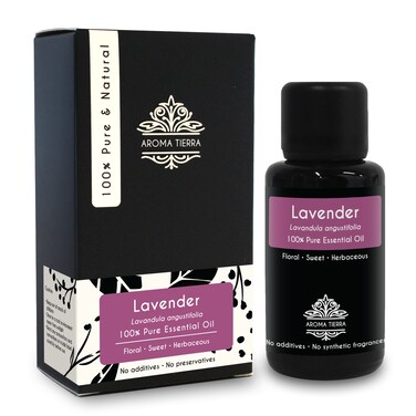 <li></b>Aroma Tierra Lavender Essential oil is 100% pure, natural and undiluted. It is extracted from high quality produce from France, by steam distillation of flowering tops of Lavender. It is free from chemicals, solvents, additives, synthetic fragrances and preservatives. The oil is very concentrated, potent and strong in therapeutic properties. Aroma Tierra takes great care to pack the oil in specially designed violet glass bottle to prevent damage from sunlight and preserve its potency. <li><li>Aroma Tierra offers a very wide selection of many other Essential oils such as Lavender, Peppermint, Frankincense, Rosemary, Tea Tree, Ylang Ylang, Bergamot, Oregano, Lemon, Thyme, Sweet Orange, etc., from across 35+ countries across 6 continents. With Aroma Tierra Essential oils, you can be assured of quality and potency - the company is very particular to use high quality produce that grows in its most natural climate, and processes it in a way that preserves maximum therapeutic benefits.