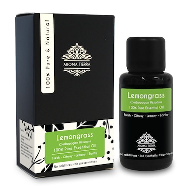 <li></b>Aroma Tierra Lemongrass Essential oil is 100% pure, natural and undiluted. It is extracted from high quality produce from India, by steam distillation of fresh and partially dried Lemongrass. It is free from chemicals, solvents, additives, synthetic fragrances and preservatives. The oil is very concentrated, potent and strong in therapeutic properties. Aroma Tierra takes great care to pack the oil in specially designed violet glass bottle to prevent damage from sunlight and preserve its potency. <li><li>Aroma Tierra offers a very wide selection of many other Essential oils such as Lavender, Peppermint, Frankincense, Rosemary, Tea Tree, Ylang Ylang, Bergamot, Oregano, Lemon, Thyme, Sweet Orange, etc., from across 35+ countries across 6 continents. With Aroma Tierra Essential oils, you can be assured of quality and potency - the company is very particular to use high quality produce that grows in its most natural climate, and processes it in a way that preserves maximum therapeutic benefits.