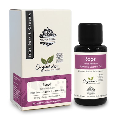 Aroma Tierra - Organic Sage Essential Oil (France) - Aroma Tierra - 100% Pure, Natural, Certified Organic By Ecocert - 30Ml
