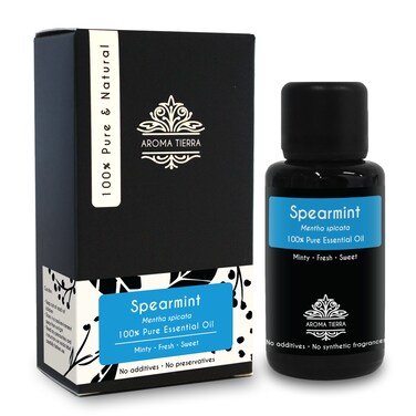 <li></b>Aroma Tierra Spearmint Essential oil is 100% pure, natural and undiluted. It is extracted from high quality produce from India, by steam distillation of leaves of spearmint plant. It is free from chemicals, solvents, additives, synthetic fragrances and preservatives. The oil is very concentrated, potent and strong in therapeutic properties. Aroma Tierra takes great care to pack the oil in specially designed violet glass bottle to prevent damage from sunlight and preserve its potency. <li><li>Aroma Tierra offers a very wide selection of many other Essential oils such as Lavender, Peppermint, Frankincense, Rosemary, Tea Tree, Ylang Ylang, Bergamot, Oregano, Lemon, Thyme, Sweet Orange, etc., from across 35+ countries across 6 continents. With Aroma Tierra Essential oils, you can be assured of quality and potency - the company is very particular to use high quality produce that grows in its most natural climate, and processes it in a way that preserves maximum therapeutic benefits.