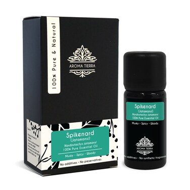 <li></b>Aroma Tierra Spikenard Essential oil (Jatamansi) is 100% pure, natural and undiluted. It is extracted from high quality produce from India, by hydro distillation of roots of the Spikenard plant (Nardostachys jatamansi). It is free from chemicals, solvents, additives, synthetic fragrances and preservatives. The oil is very concentrated, potent and strong in therapeutic properties. Aroma Tierra takes great care to pack the oil in specially designed violet glass bottle to prevent damage from sunlight and preserve its potency. <li><li>Aroma Tierra offers a very wide selection of many other Essential oils such as Lavender, Peppermint, Frankincense, Rosemary, Tea Tree, Ylang Ylang, Bergamot, Oregano, Lemon, Thyme, Sweet Orange, etc., from across 35+ countries across 6 continents. With Aroma Tierra Essential oils, you can be assured of quality and potency - the company is very particular to use high quality produce that grows in its most natural climate, and processes it in a way that preserves maximum therapeutic benefits.