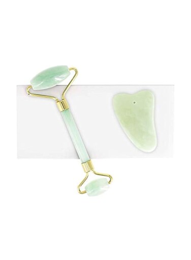Baycheer - 2-Piece Jade Roller And Scraping Tool For Face Green