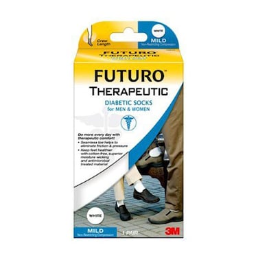- FUTURO™ Therapeutic Diabetic Socks will empower you every day! FUTURO™ understands the special considerations essential for people with Diabetes to stay healthy and active. These cotton-free, friction-reducing socks, with seamless toe, allow you to move freely without constricting your feet or toes or impeding leg circulation. FUTURO™ Diabetic Socks also wick away moisture to help keep your feet dry and healthy. FUTURO™ ensures you the quality and comfort not all brands can promise. Enjoy your day with confidence; enjoy your day in comfort.