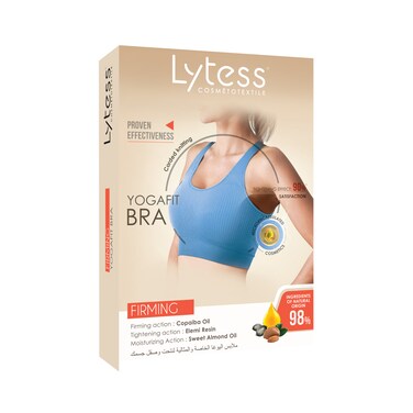 The firming Yoga fit bra offers optimal comfort and support during sports activities. Its seamless knitting offers elasticity and breathability. For an incomparable second-skin effect, combined with the softness of cosmetic active ingredients to protect and firm your chest.