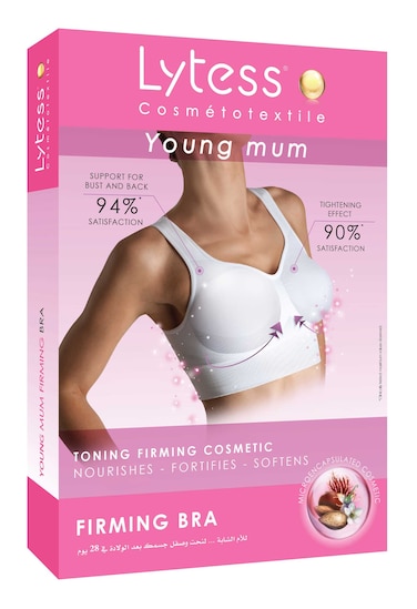 Innovative clothes from France with new technology.Young mum products is the most important products to use after childbirth, the skin dries out and loses tone.The firming cosmetic complex in the new mum bra nourishes,firms,and tones the skin, the shaping textile tightens and maintains tissues to enhance your bust.Wash it in washing machine at 30 degree temperature and don’t use chlorine.We advise you to use at the same time the other two products ( Young Mum Flat Tummy brief and Young Mum falt tummy panty) as it is special products for young mum.