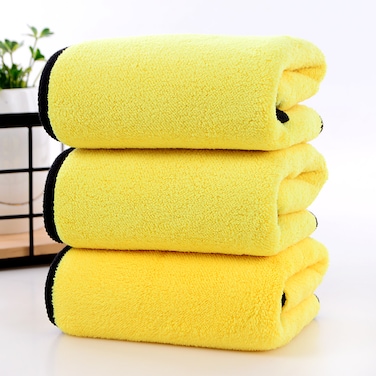 Lavish [ 3-Piece ] Double-Sided Cotton Microfiber Towel Super Absorbent Thick Washing Wiping Cloth Size 30 X 40 cm Color Yellow