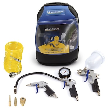 The MICHELIN Air Tools Kit for Compressor is a comprehensive and versatile set of air tools designed for professionals and DIY enthusiasts alike. Whether you're working on a car, bicycle, or any other inflatable item, this air tools kit has everything you need to get the job done quickly and efficiently. This kit of tools, including a paint spray gun, blow gun, and inflating gun, this kit has all the essentials for working with an air compressor.