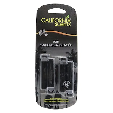 The California Scents Ice Fraicheur Glacee Car Vent Stick Air Freshener is a set of 4 black vent sticks that provide a refreshing and long-lasting fragrance for your car.