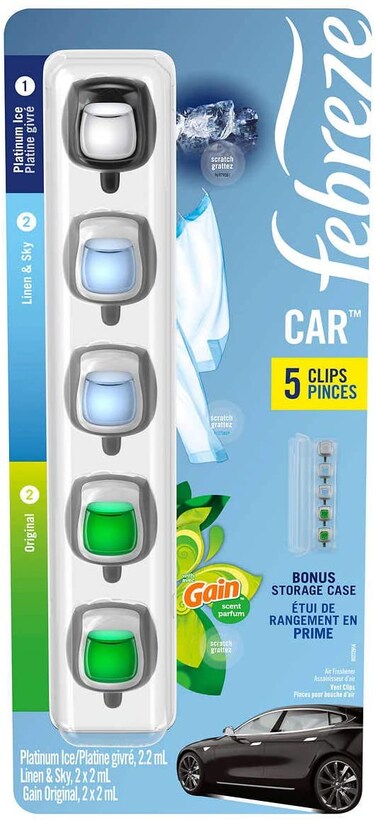 Febreze Car Air Freshener 5 Count Platinum, Linen & Sky, Gain Original Vent Clips