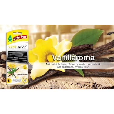 Say goodbye to unpleasant odours and hello to a delightful vanilla aroma with the Little Trees Vent Wrap Air Freshener in Vanillaroma Black.