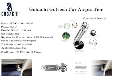 GOBACHI®GoFresh is a car air purifier/ionizer designed to eliminate harmful particles inside your car. The negative ions released by the device effectively remove smoke, reduce unpleasant odor, kill harmful viruses and can help increase concentration and alleviate fatigue. It is a plug and play device hence GoFresh will work immediately once you plug it in your car’s cigarette lighter receptacle.