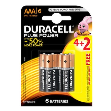 Duracell Plus Power AAA Battery Multicolour Pack of 6