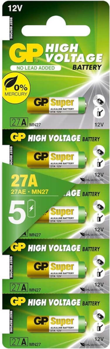 GP 27A Super High Voltage 12V Alkaline Batteries - 5 Pieces