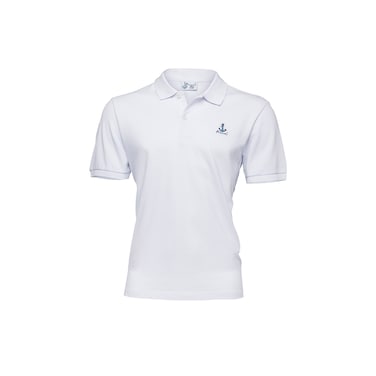 Anemoss Anchor Men's Polo Collar T-shirt, Short Sleeve Golf Tennis Tshirt, 100% Cotton, M Size, White
