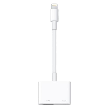 The Apple Lightning Digital AV Adapter in white allows you to connect your iPhone iPad or iPod with a Lightning connector to an HDMI-compatible TV monitor or projector.