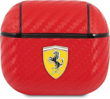 CG MOBILE Ferrari PC PU Carbon Yellow Shield Metal Logo Case Compatible with Airpods 3, 360 Full Protection Cover Suitable for Wireless Charger Officially Licensed (Red)