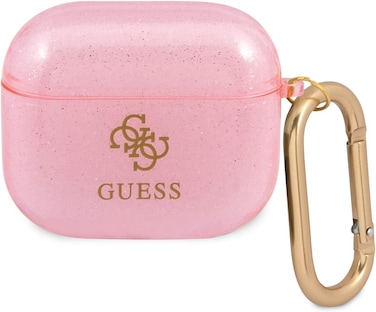 CG Mobile Guess TPU Colored Glitter Case With Anti-Lost Ring Compatible For Airpods 3 - Elegant Design - Scratch Resistant, Dustproof & Absorbing Protective Cover Officially Licensed (Pink)