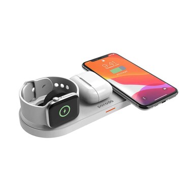 Porodo 4 in 1 Slim Charging Station 7.5W/10W for iPhone / Apple Watch / Airpods - White