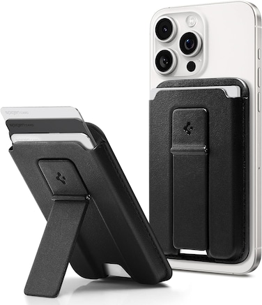 Spigen Smart Fold 2 MagFit MagSafe compatible Magnetic Wallet Card Holder for Apple iPhone 15, iPhone 14, iPhone 13 and iPhone 12 series fits up to 3 cards and allows you to carry your essentials with more room to spend and more room to play. Its all-new kickstand shifts to landscape and portrait mode for a view that best suits you. We got you.