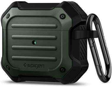 Spigen Tough Armor designed for Airpods 3 case cover (3rd Generation 2021) with Keychain [Extreme Impact Foam] - Military Green