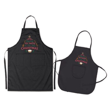 Giftmate It's Beginning to Taste Like Christmas Kitchen Apron Set (Black) Unisex Serving Cooking Apron Apron for Kids Chef Apron Breathable Fabric Waterproof Oil Proof Apron Unisex Apron