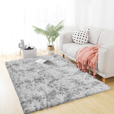 Generic Flashltd Fluffy Ultra Soft Shaggy Area Rugs For Bedroom Fluffy Carpet For Kids Room Bedside Nursery Mats (Grey White, 4' X 5.3')