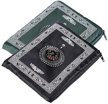 Portable Muslim Prayer Rug with Compass Pocket Size Prayer Mat compass Qibla finder with Booklet Waterproof Material (2 Pack)