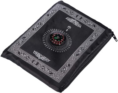 Portable Muslim Prayer Rug with Compass Pocket Size Prayer Mat compass Qibla finder with Booklet Waterproof Material (Black)