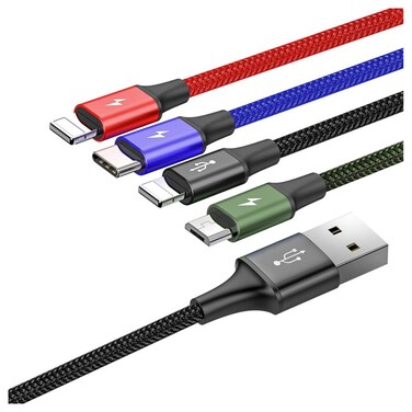 Baseus Fast 4-in-1 Cable For lightning(2)+Type-C+Micro 3.5A 1.2M Black