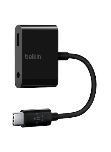 Belkin - RockStar 3.5mm Audio With USB-C Charge Adapter Black