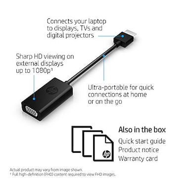 - The HP HDMI to VGA Adapter instantly connects your tablet, notebook or Ultrabook to a projector or other external monitor in stunning 1080P and 720P HD.