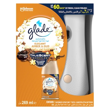 Glade Automatic Spray Holder With Elegant Amber & Oud Air Freshener 269ml