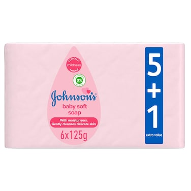 Johnson's Baby Soft Soap With Moisturisers Gently Cleanses 125g Pack of 6