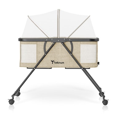 Teknum 3 - IN - 1 Baby Cot / Cradle by SAMBOX can be used as Cradle or Rocker Bassinet / Cozy Napper Cot or Bedside Crib / Baby Basket or Baby Recliner with Breathable Mesh looking window for your baby & Universal wheels with brake for easy maneuvering, just fold wheels to Switch Mode from bassinet mode to cradle mode. The movement of the Cradle Rocker is so smooth that your little ones will literally feel that they are in your arms. Quick and Easy Assembly & Hight Adjustments – No Tools Required, Comes with Comfortable Mattress and Breathable Mosquito net, Baby Rocker Bassinet is made with Premium Soft Linen Fabric and Steel Frame. Cozy Napper Cot comes with Wide Bottom Design for safety assurance. Easy detachable sleeping basket can be removed and used alone as Basket mode. Suitable Age 0 - 12 Months with Load Bearing Capacity up to 15kg. Easy To fold & Carry comes with handle to fold and Go, Easy to Store with unique Collapsible Easy fold design, Teknum 3 - IN - 1 Baby Cot is Great gift for baby shower to get back mother's delicate sleep, giving the baby a comfortable space to sleep naturally.