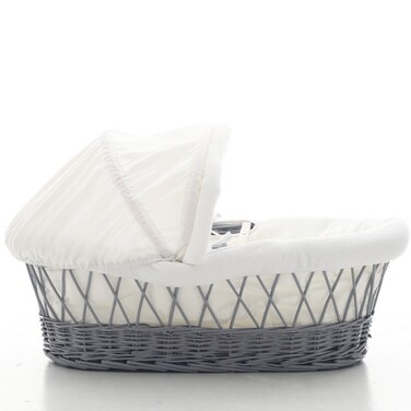 Teknum Infant Wicker Moses Basket with White Waffle Beddings - Wooden Grey