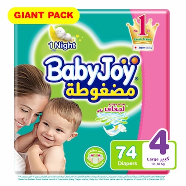 Baby Joy Compressed Diamond Diapers Large Size 4 10-18kg Giant Pack 74 Diapers