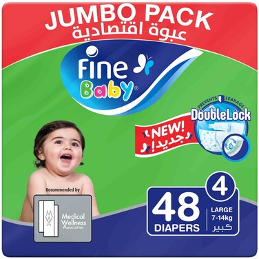 Fine Double Lock Baby Diapers Large Size 4 7-14kg Jumbo Pack 48 Diapers