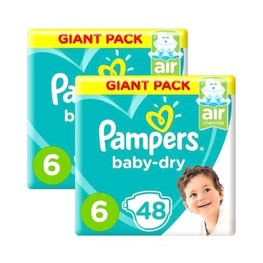 Pampers Baby-Dry Diapers Double Extra Large Size 6 15kg+ Giant Pack 48 Diapers Pack of 2