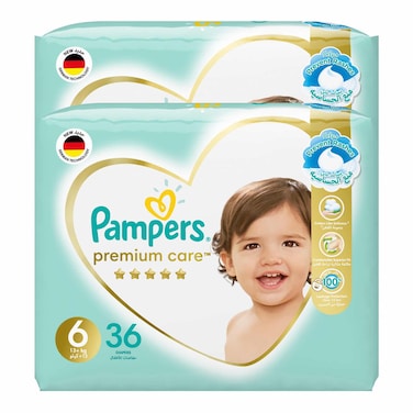 Pampers Premium Care Diapers Size 6 13kg+ Value Pack 36 Diapers Pack of 2