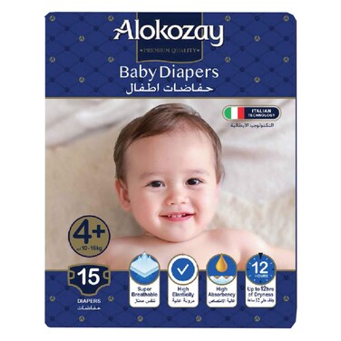 Alokozay Premium Diapers Size 4 Plus 10-16kg 15 Diapers